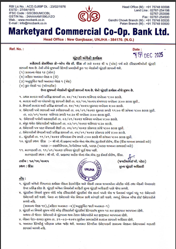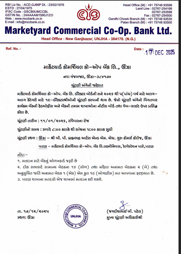 The Marketyard Commercial Co-op Bank Ltd. is located in the heart of Unjha city city, inside the premises of APMC (Agricultural Produce Market Committee) Unjha. The Bank had a very inspiring beginning in the year 1975. We strongly believe in providing best in class services to our customers in any possible manner.